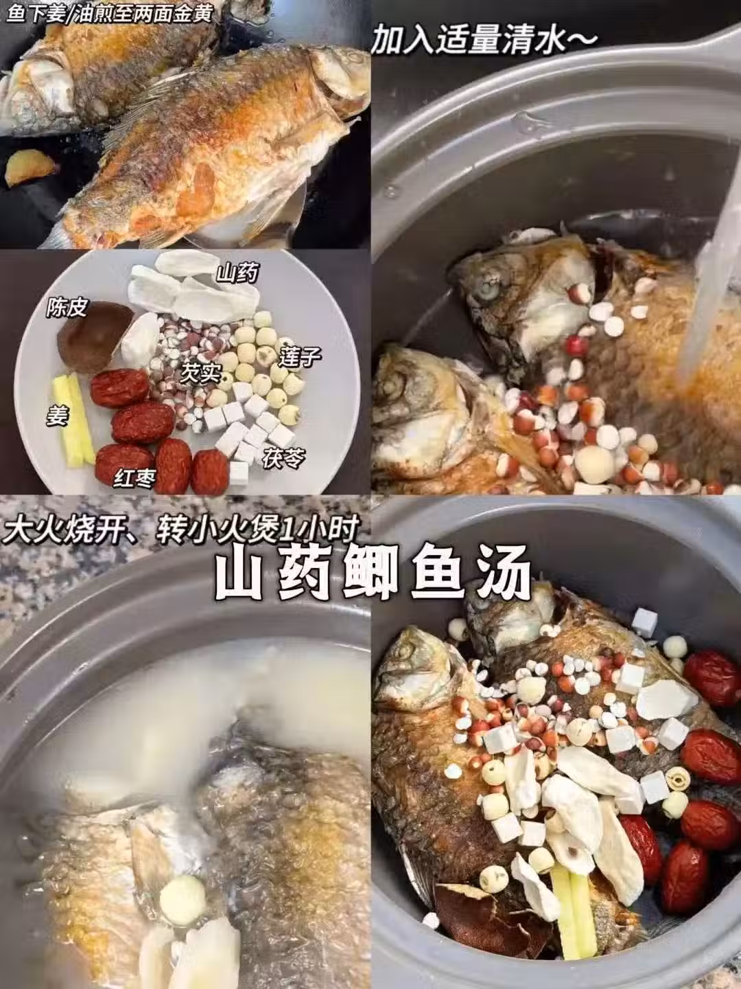 放入山藥、陳皮、蓮子、芡實、紅棗,繼續燉煮。