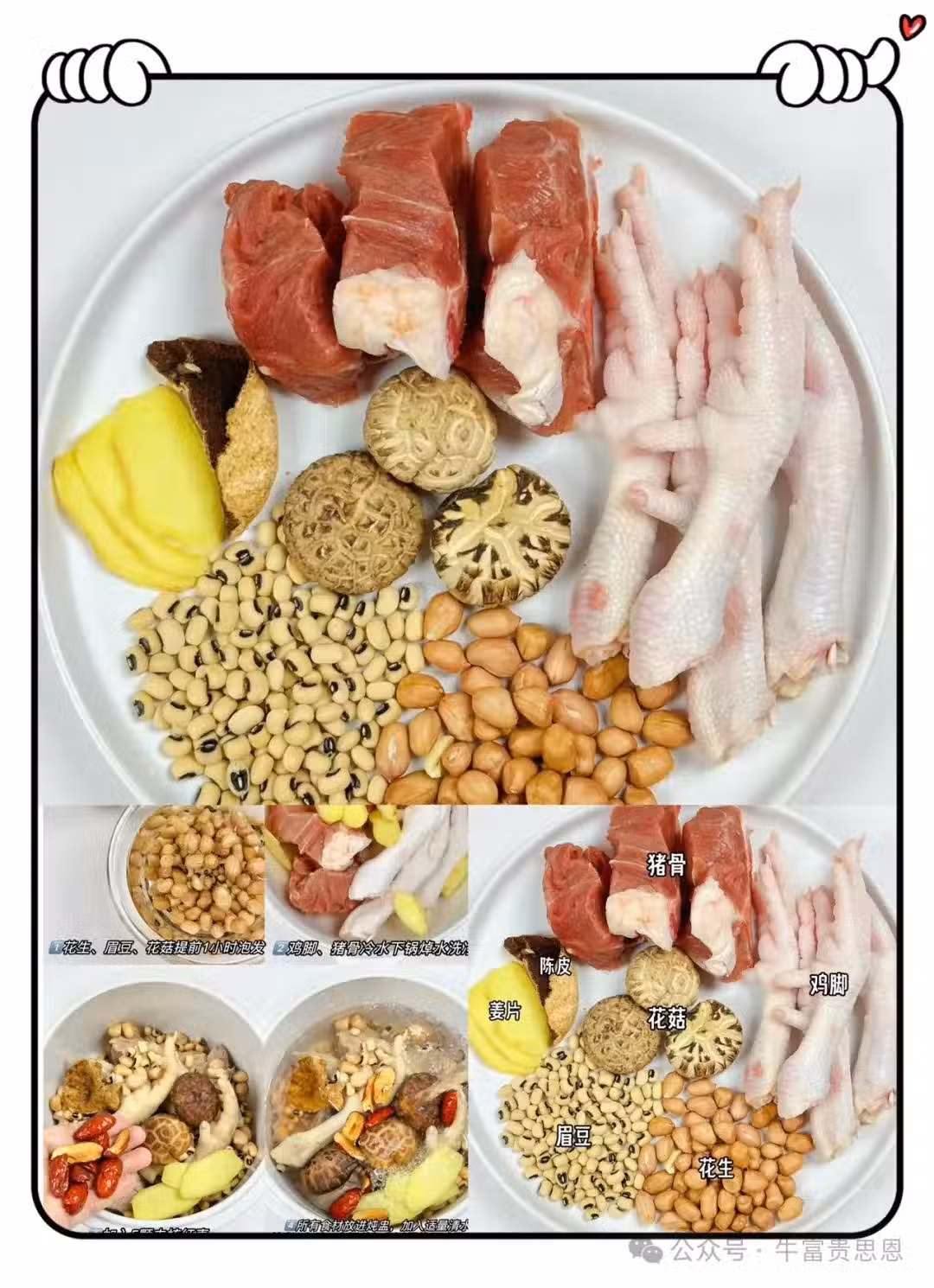 1. 雞爪剪指甲焯水,花生眉豆提前泡發