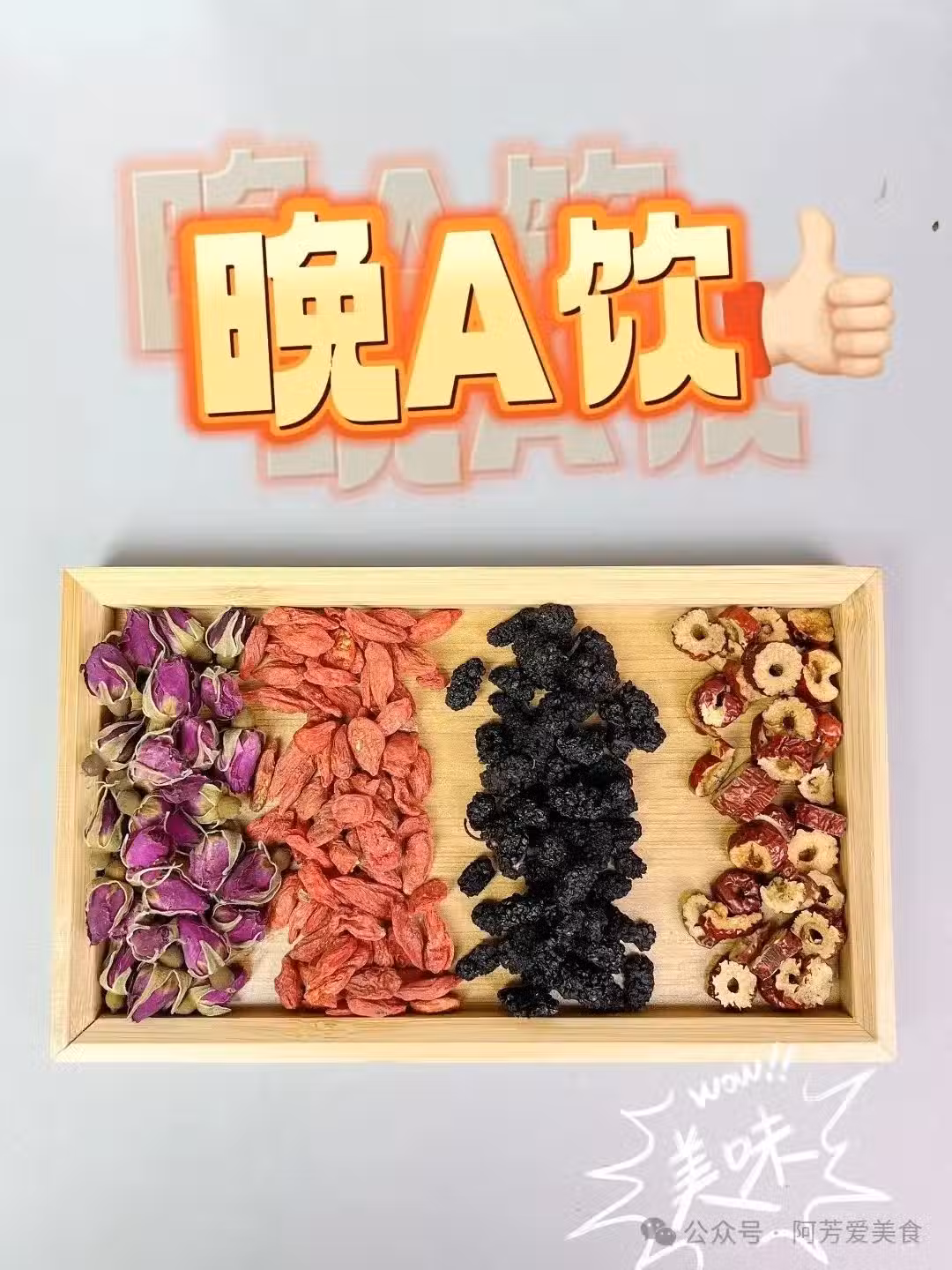 桑葚3個+紅棗5片+玫瑰花3朵+枸杞5粒, 桑葚香甜多汁,搭配枸杞和紅棗的棗香,很是好喝,還有玫瑰的花香,好聞的很。