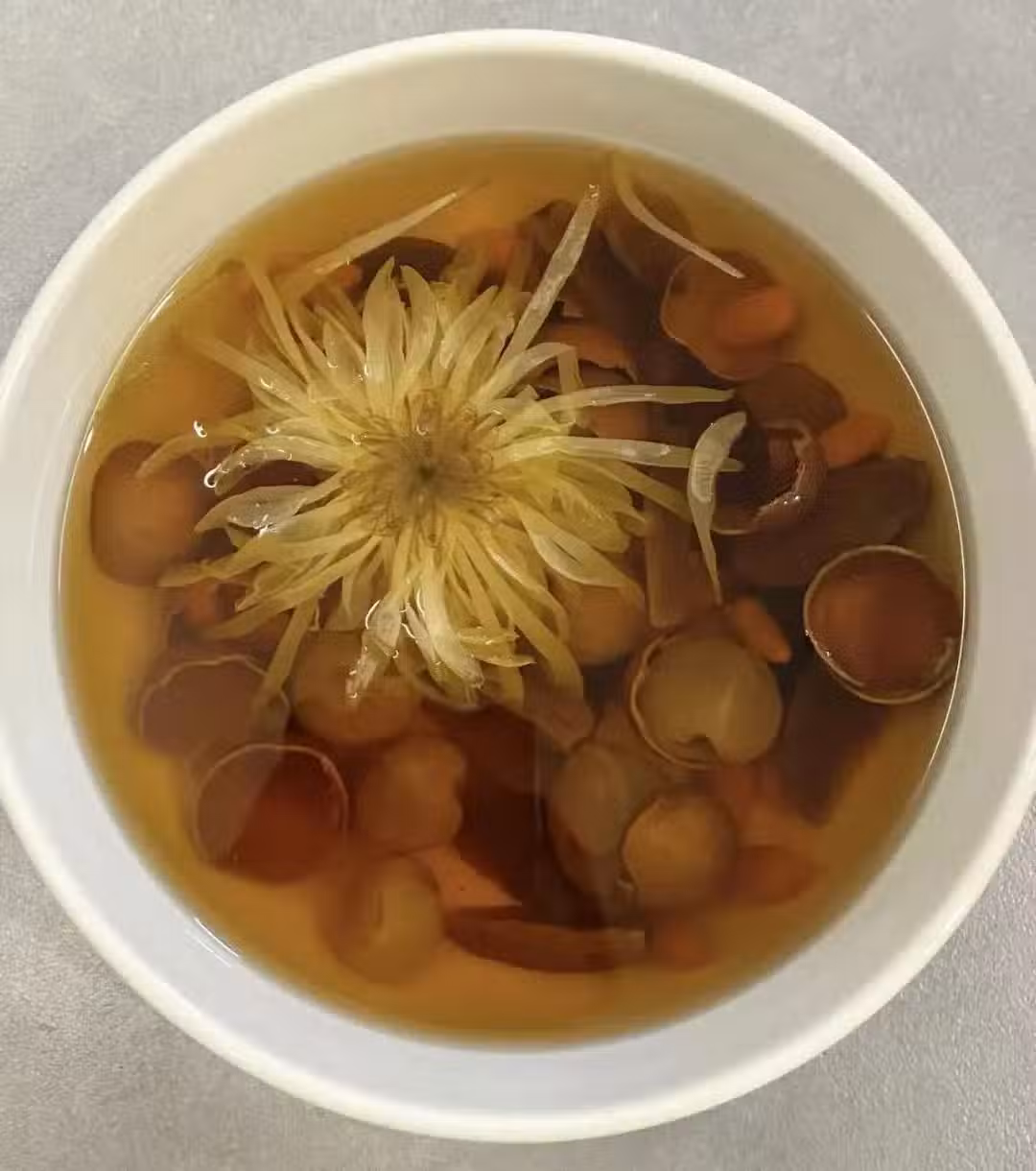 這個搭配里,桂圓、紅棗、枸杞可以滋養👀,菊花為引,可以清gan明目,調理👀問題~