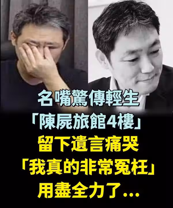 台名嘴驚傳輕生「陳屍旅館4樓」 留下遺言痛哭「我真的非常冤枉」:用盡全力了...