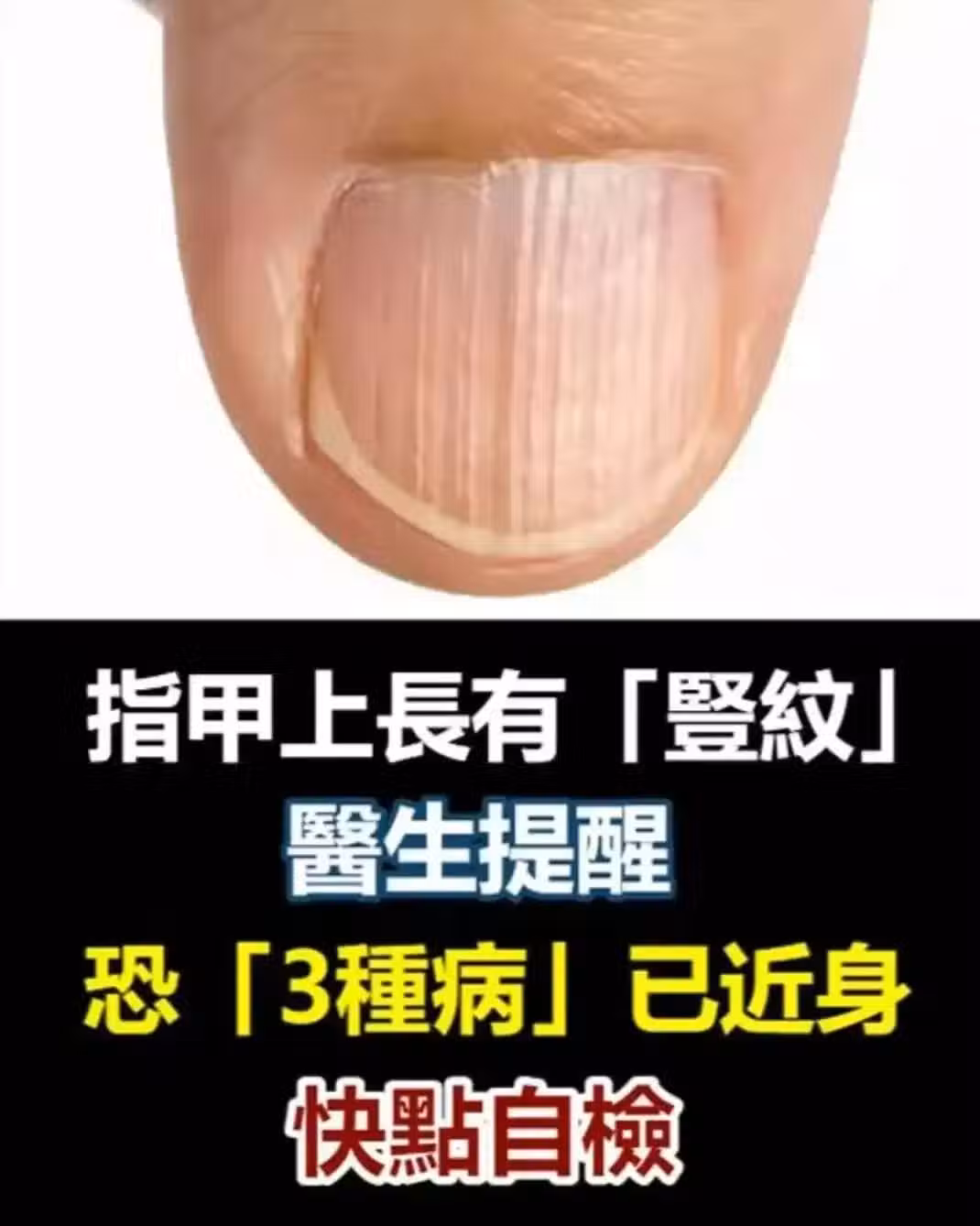 指甲上長有「豎紋」 醫生提醒:可能是「這3種病」已近身,自檢