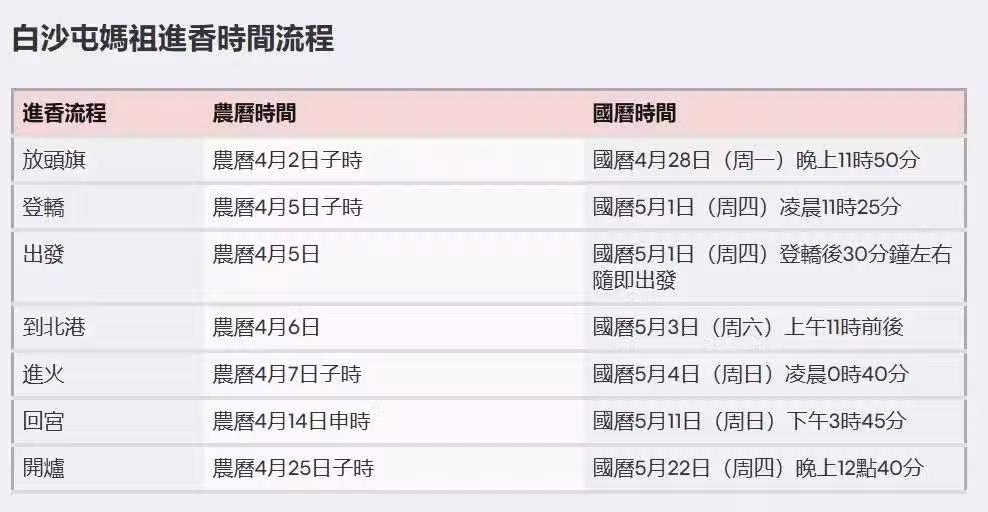 白沙屯媽祖進香起駕日:5月1日