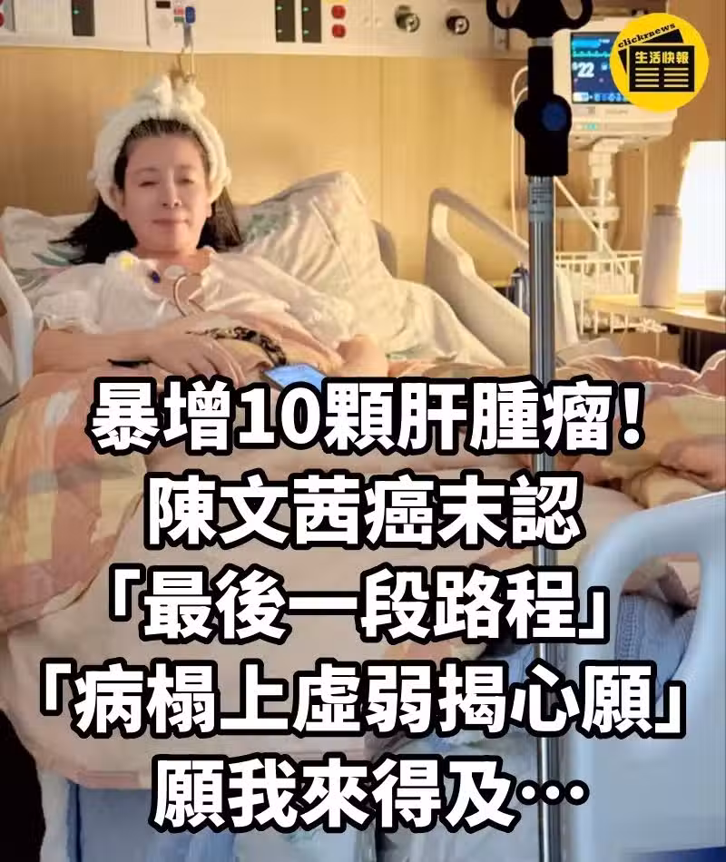 暴增10顆肝腫瘤!陳文茜癌末認「最後一段路程」 「病榻上虛弱揭心愿」:願我來得及…