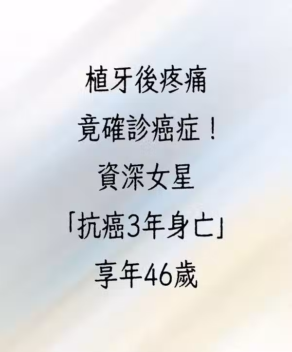 植牙後疼痛竟確診癌症!資深女星「抗癌3年身亡」享年46歲