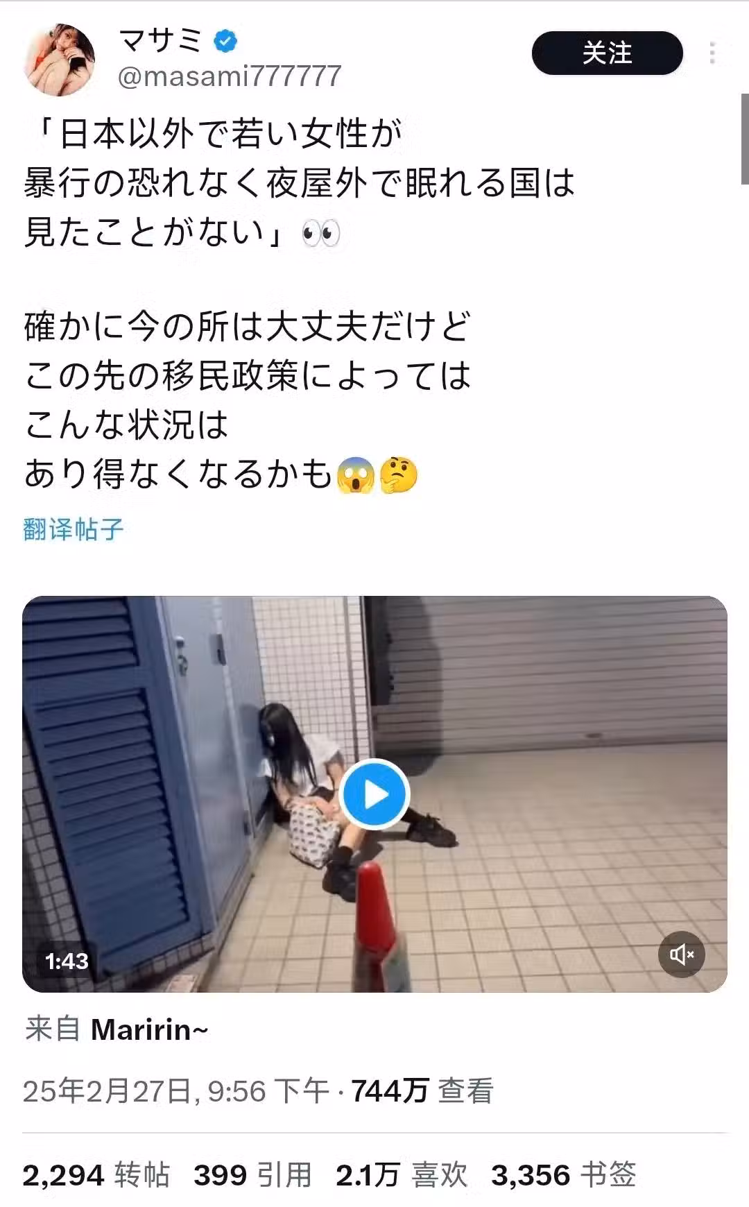 話說,最近,一段視頻在日本社交平台 X(前 Twitter) 上火了。畫面中,幾名年輕女性在東京大久保公園 附近的街頭醉倒熟睡,完全不設防。博主不禁感嘆道:「除了日本,很少見到年輕女生能這樣安心地在戶外睡覺,而不用擔心安全問題。」 這番話引起了網友們熱烈討論,截至目前,視頻的觀看次數已經突破 280萬,大家圍繞著日本治安、女性安全和夜生活文化展開了激烈的爭論。