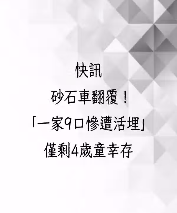 快訊/砂石車翻覆!「一家9口慘遭活埋」僅剩4歲童倖存