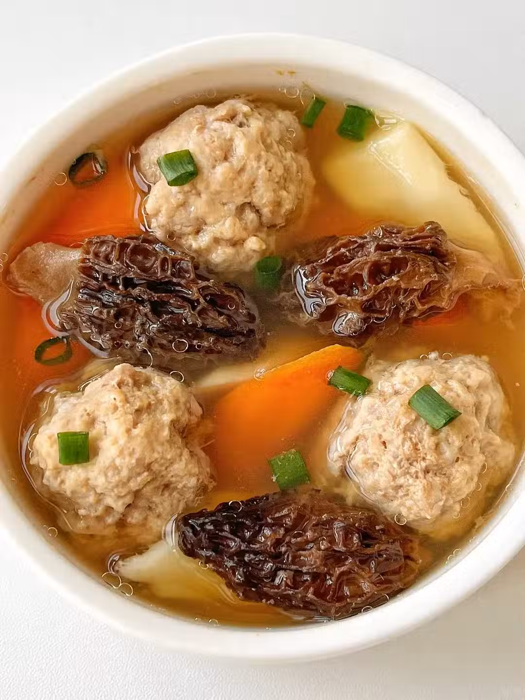 最近發現孩子總喊餓,飯量比上個月大了一圈,體格也壯了不少。 翻育兒書才知道,春季生長激素分泌旺盛,身體需要更多營養。 我向營養師朋友取了取經,她推薦我多給孩子做3道湯,今天就在這分享給大家!希望孩子們都能在這個春天,抓住生長黃金期,越長越高! 一、羊肚菌肉丸湯 羊肚菌肉丸湯,營養全在湯里!肉丸Q彈,羊肚菌鮮香,喝一口人都暖乎乎的~羊肚菌富含蛋白質和維生素,肉丸細膩易消化,兩個搭配就是」天作之合「。 春天是孩子長身體的好時候,這碗湯養脾胃又補營養,孩子的脾胃強健了,營養吸收自然就多,長高不用愁。 【食材】 羊肚菌、山藥、胡蘿蔔、肉沫 【做法】