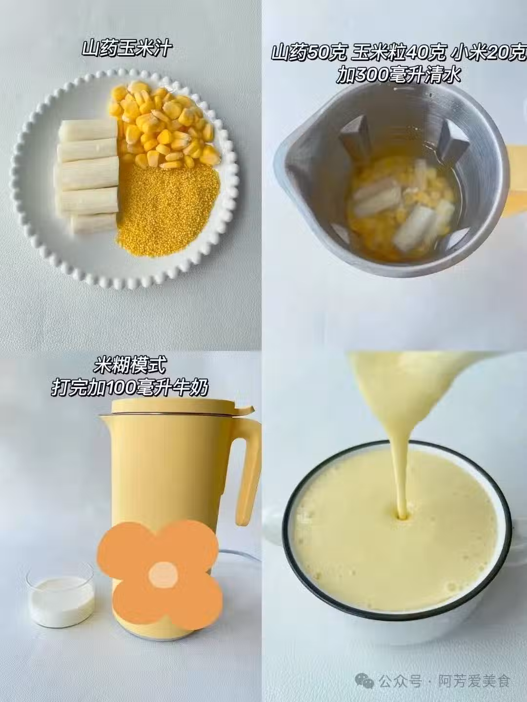 山藥玉米米糊,二者的搭配很驚艷,甜玉米的香脆多汁,咬一口都能感覺到很清甜,和山藥一融合更加的驚艷。