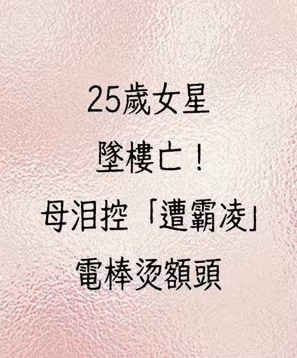 25歲女星墜樓亡!母淚控「遭霸凌」電棒燙額頭……