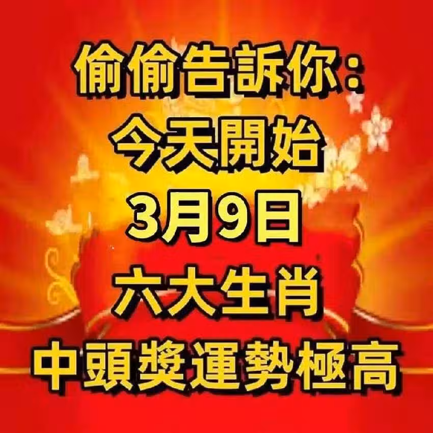 偷偷告訴你:今天開始(3月9號)中頭獎運勢極高的生肖