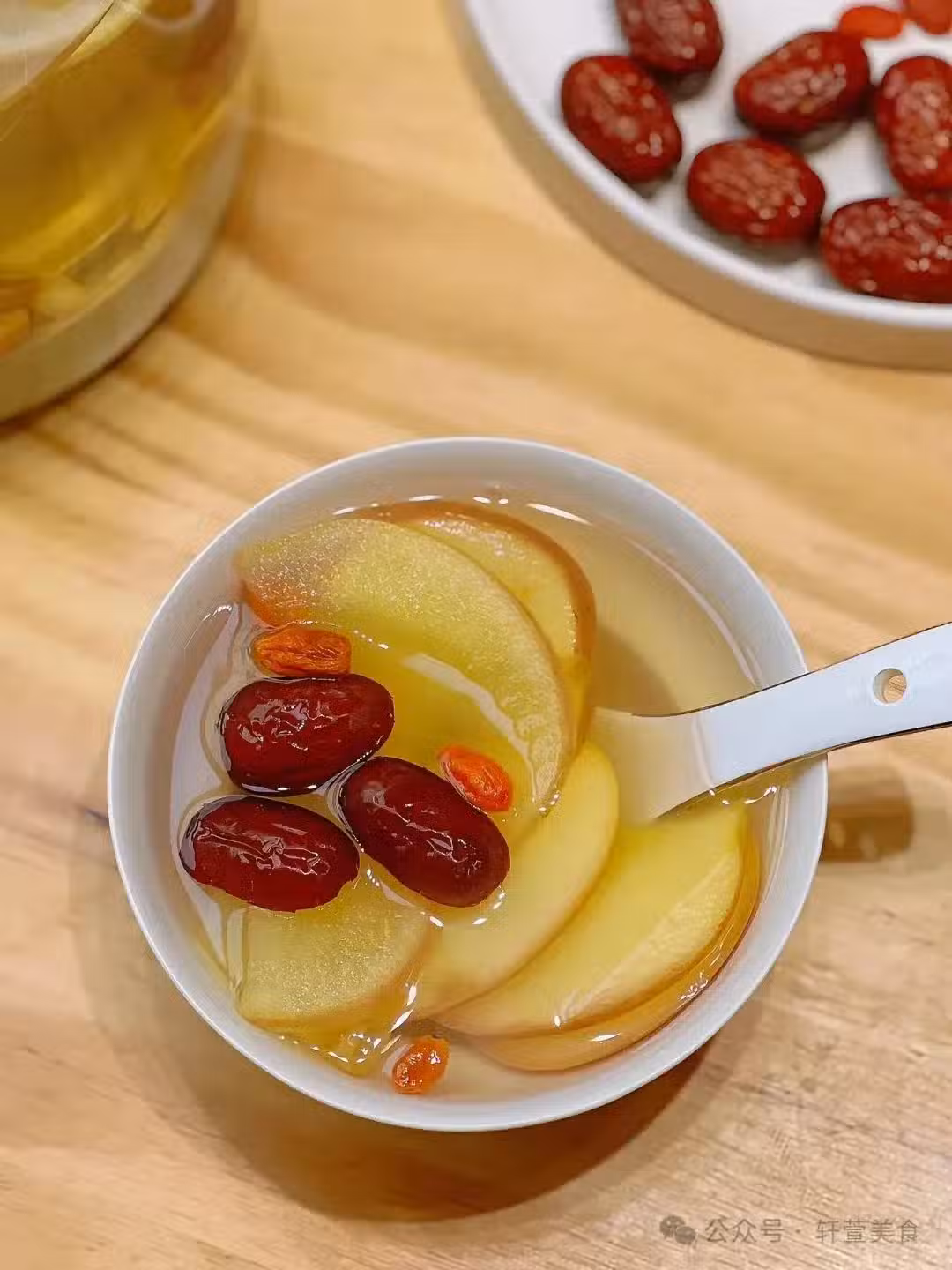 蘋果一顆、黃芪10克、麥冬15克、枸杞10克、紅棗去核5顆