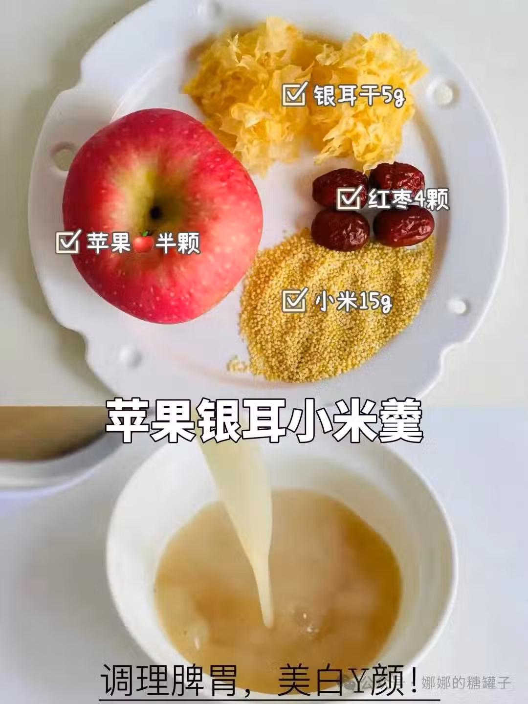 食材:蘋果半顆➕小米30g➕紅棗4顆。(這款真的對胃非常友好,老少皆宜。)