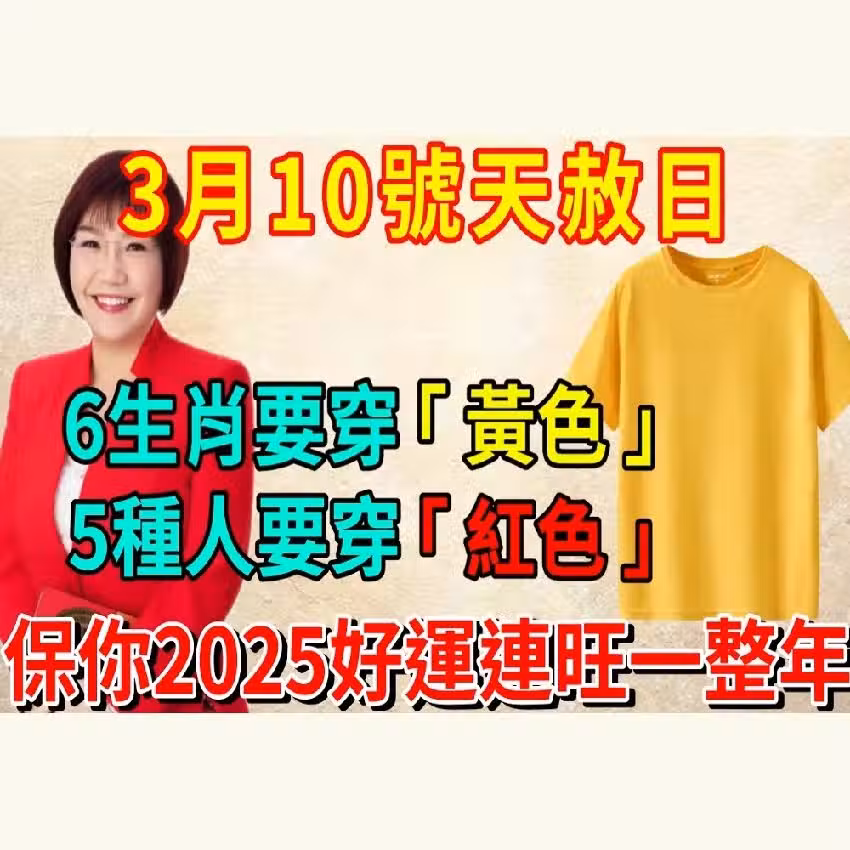 算命師說:3月10號天赦日!6生肖要穿黃色,5種人要穿紅色,保你平平安安災難消除!2025好運連旺一整年!