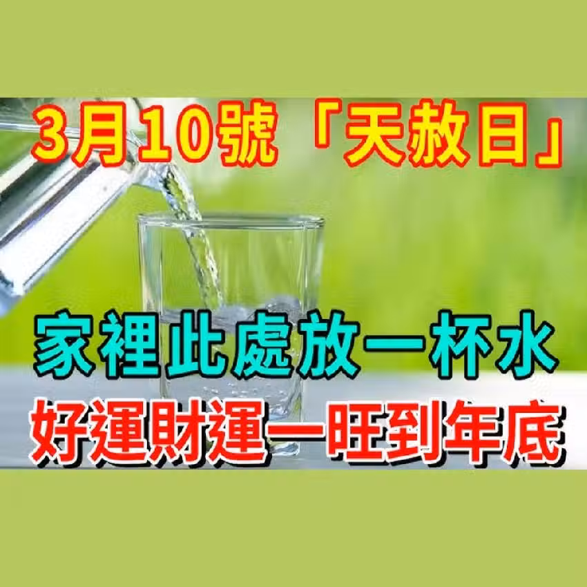 風水大師偷偷泄露天機:3月10號「天赦日」,家裡此處放一杯水,好運財運一旺到年底!再忙再有錢也要看看