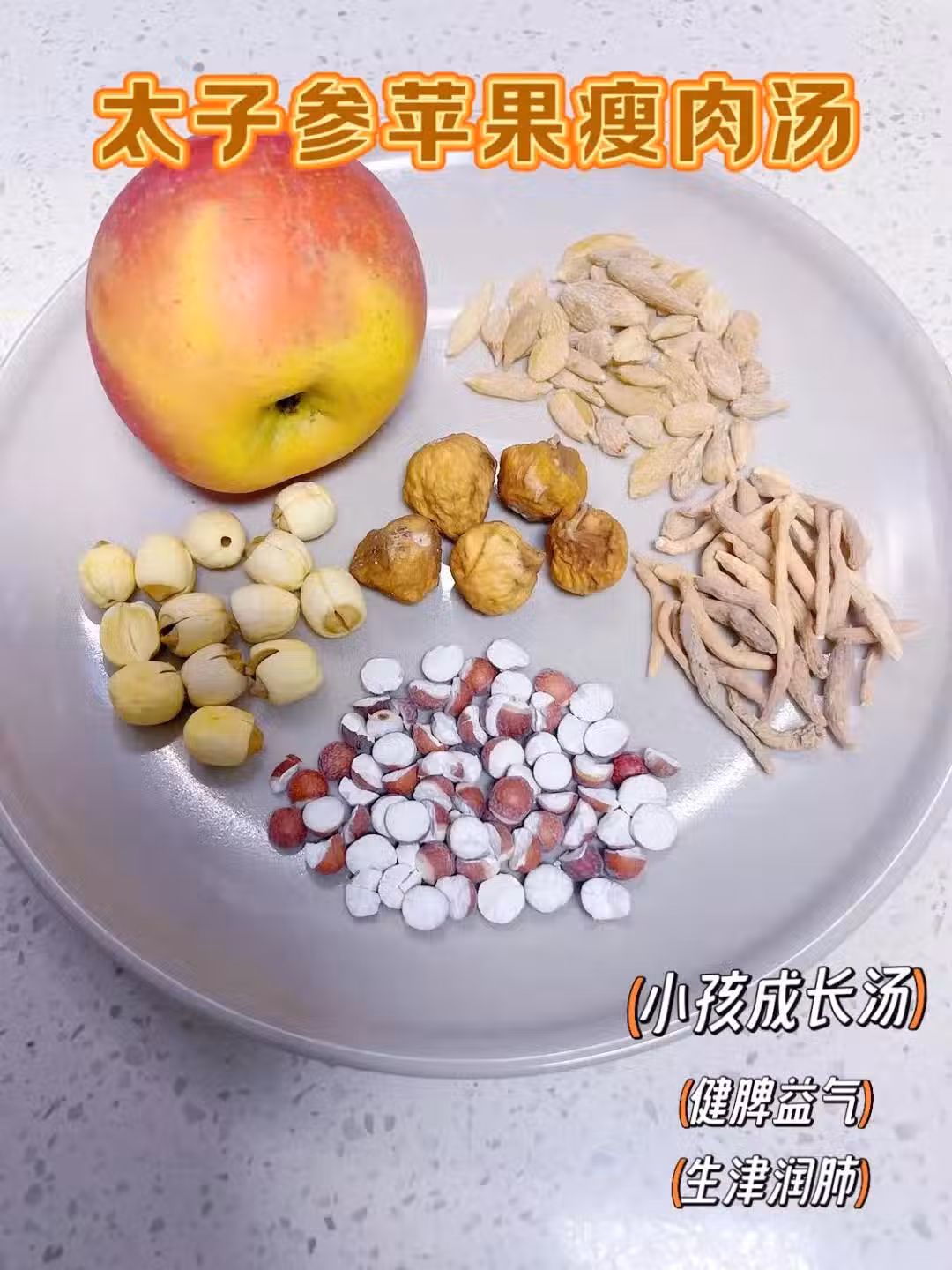 準備食材::太子參10克,麥冬15克,芡實15克蓮子15克,無花果5個,蘋果1個,瘦肉200克。
