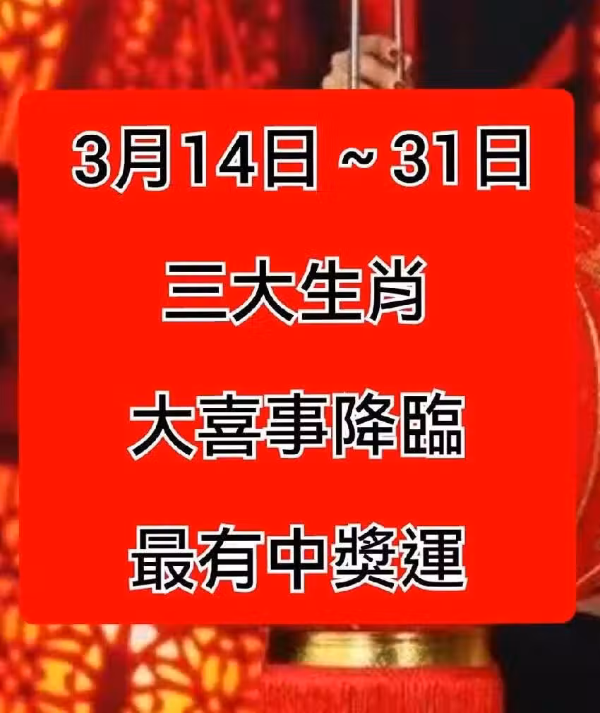 3月14日~31日 三大生肖大喜事降臨 最有中獎運。