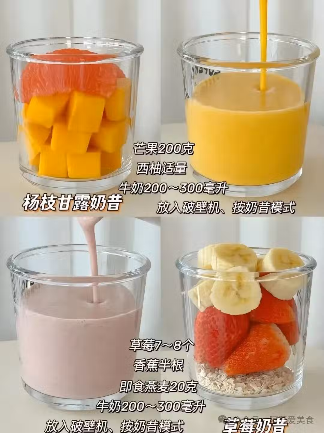 草莓奶昔,也是很多小朋友們的最愛,草莓甜甜的,再加入香蕉和燕麥,比外面賣的還好喝呢,還很健康。
