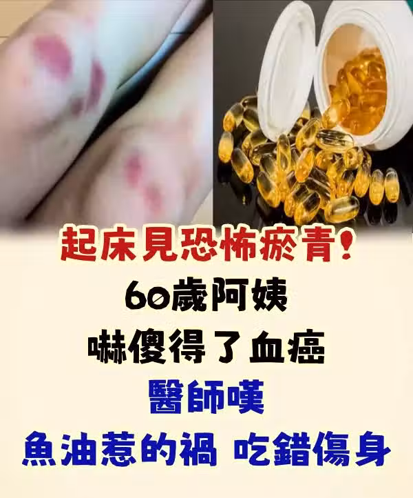 起床後驚見恐怖瘀青!60歲阿姨嚇傻「我得了血癌」衝去掛急診,醫師嘆「魚油惹的禍」吃錯傷身