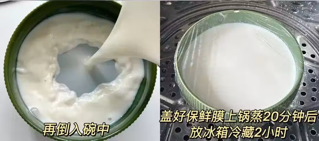 牛奶一定要煮熟後放涼它,凝固效果才好,而且牛奶儘量選擇蛋白質含量高的,容易凝固,口感也棒!