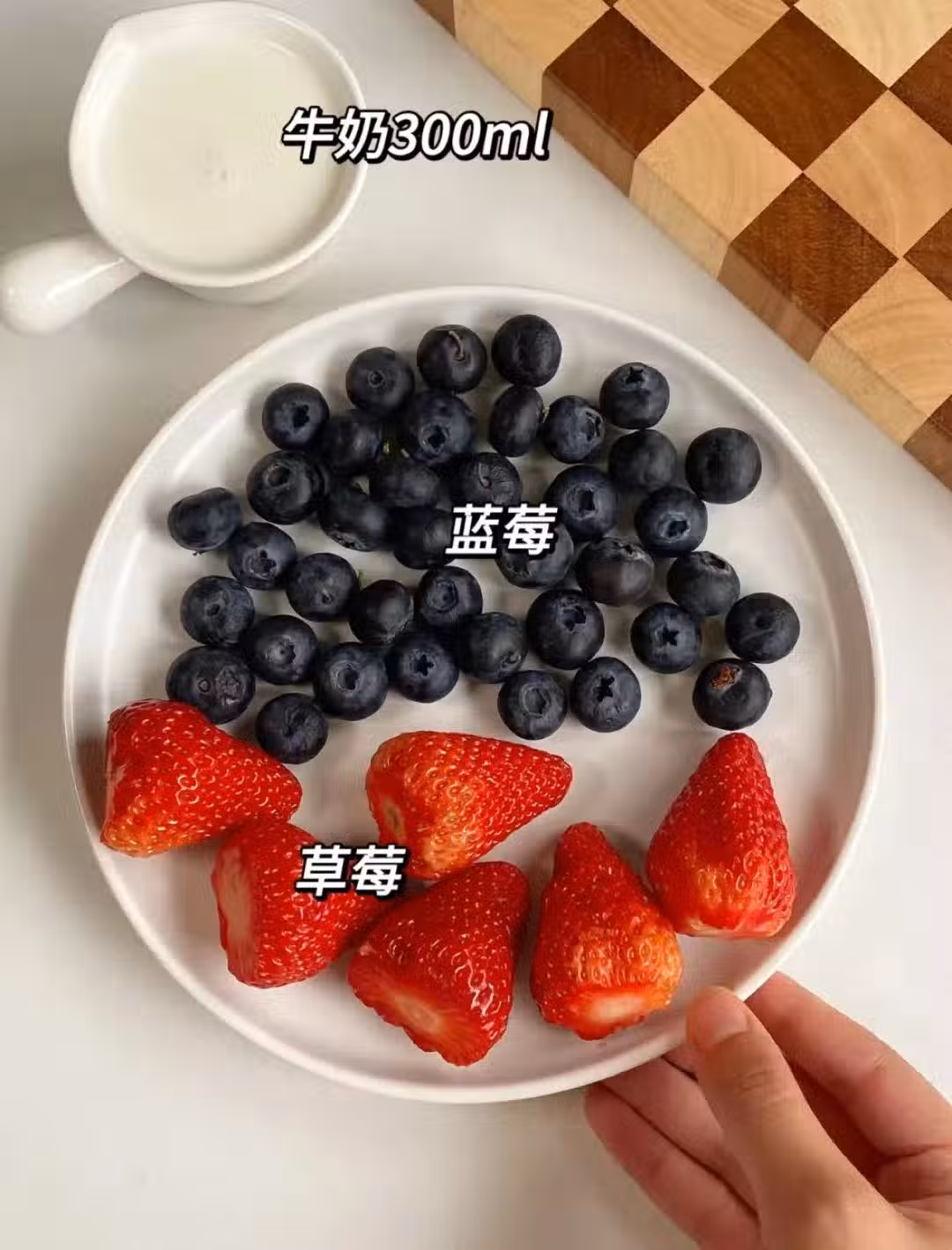 ✅做法:洗乾淨的水果,放入破壁機中,奶昔模式開兩分鐘,倒入準備好的牛奶,攪拌十秒中,讓其充分混合。