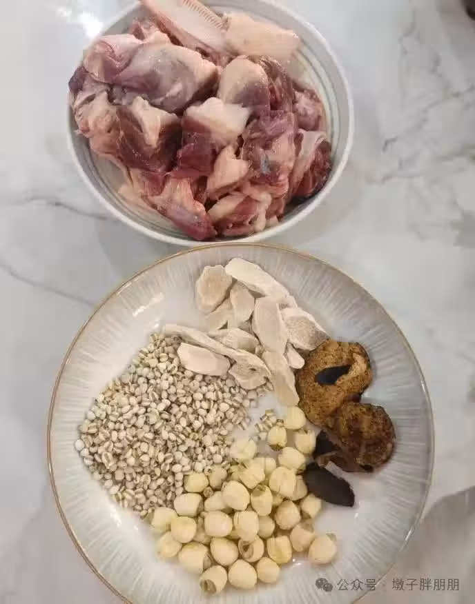 - 1小時後,加入泡發好的陳皮、薏米、山藥、蓮子,繼續燉煮30分鐘。