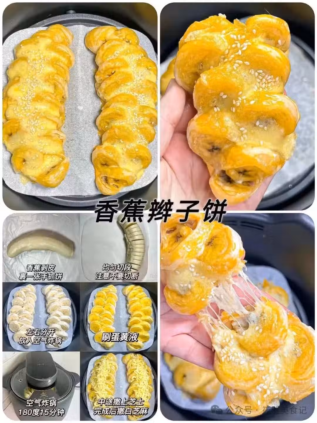 這款辮子餅不僅顏值超高,製作過程也充滿樂趣!將香蕉切片編成辮子形狀,放入空氣炸鍋中烤制,外酥里軟的口感讓人愛不釋手!