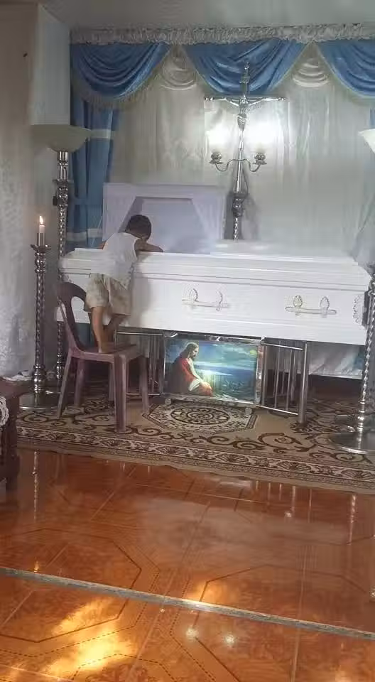小男孩不知道媽媽已經去世,還趴在棺木上痴望著她,當阿姨聽到他問出「這一個問題」心臟都快裂開了…