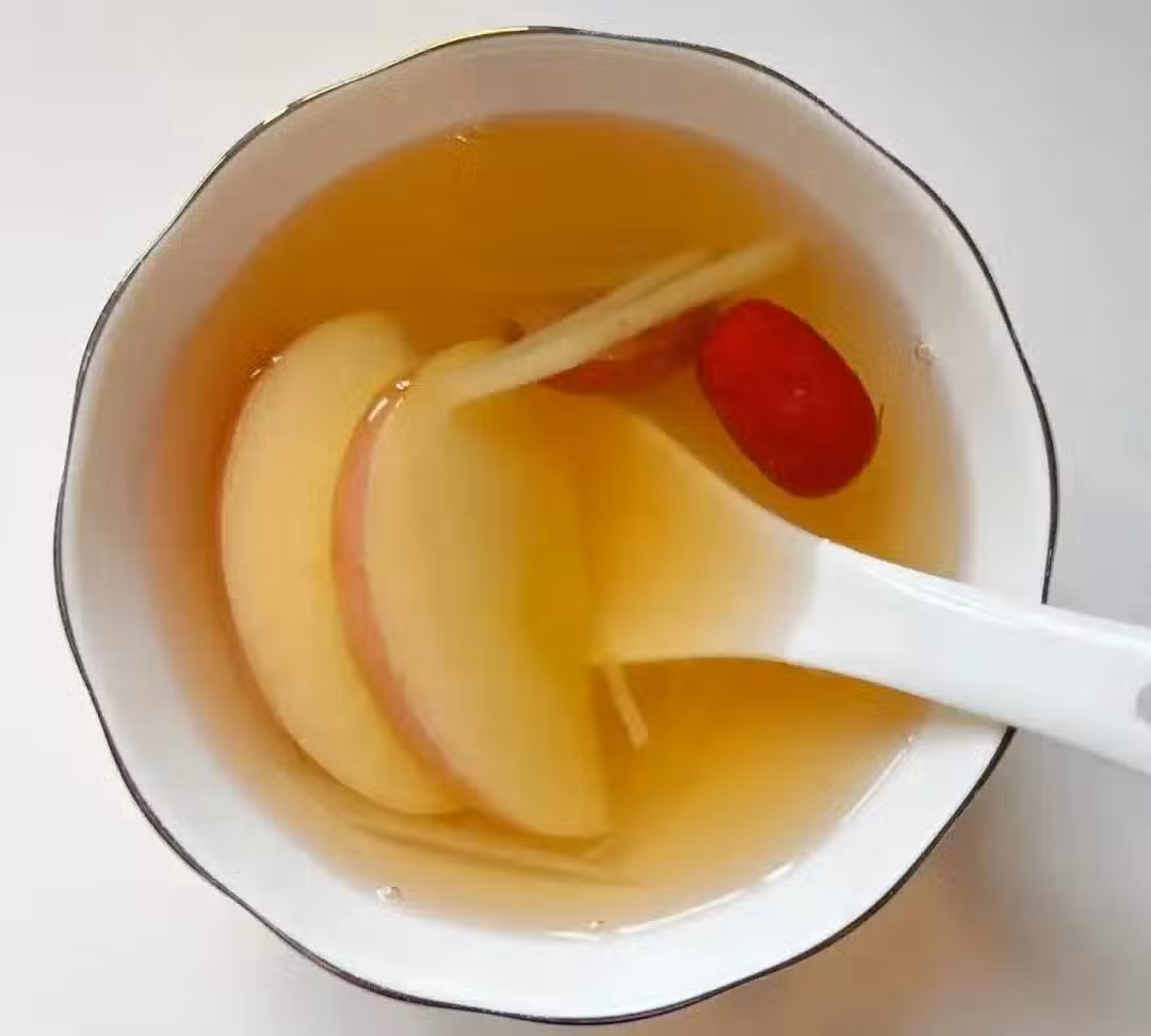 【✅做法】: 1.蘋果半個清洗乾淨後切塊,切一小撮薑絲,紅棗去核和5克黃芪一起清洗乾淨。 2.所有食材一起下鍋,加清水煮20分鐘。 這道蘋果水適合早上11點前喝~