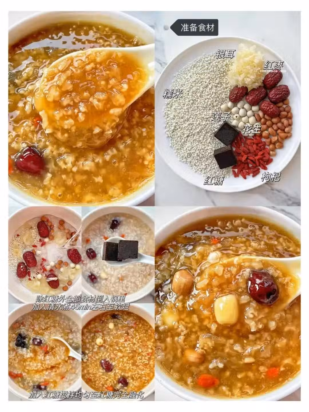 五穀為養,慢火熬煮間,紅豆健脾、黑米固腎、桂圓安神,看似平平無奇的搭配,卻是潤物細無聲的氣血充電站。