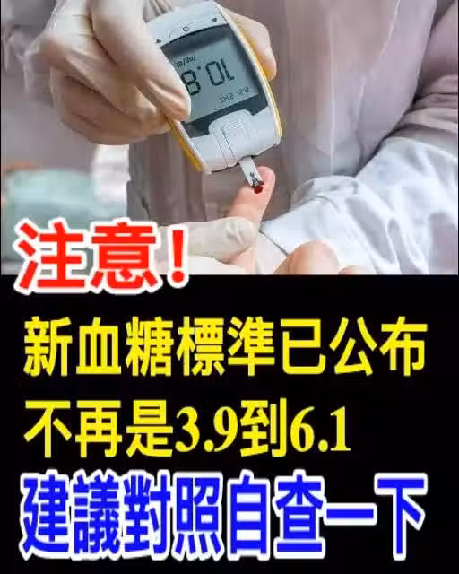 注意!新血糖標準已公布,不再是3.9到6.1,建議對照自查一下!