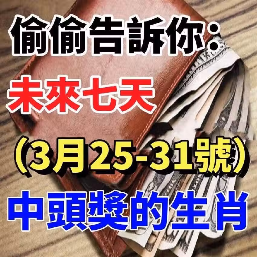 偷偷告訴你:未來7天(3月25 到 31號)中頭獎勢極高的生肖