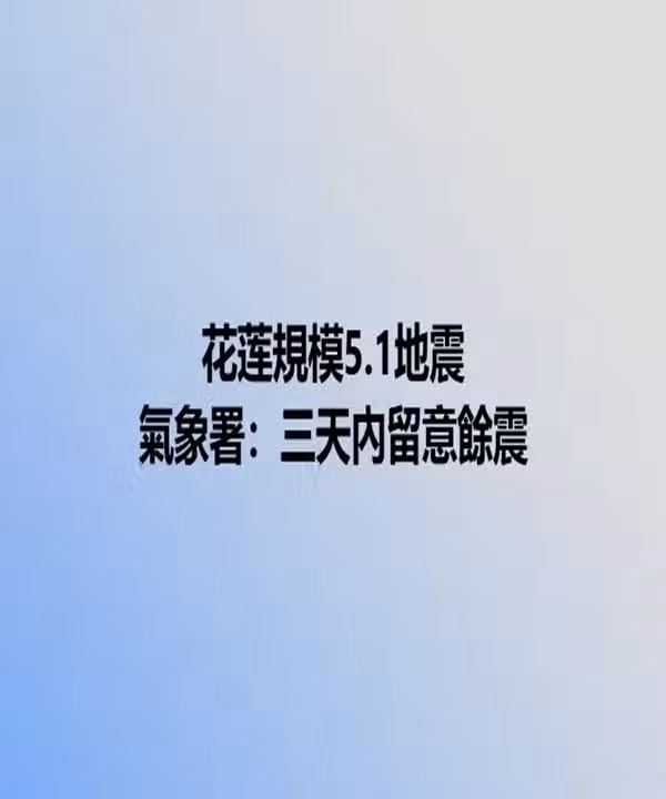 花蓮縣(25)天上午發生規模5.1地震,氣象署研判屬於一起獨立事件,3天內要留意規模4到4.5的餘震。