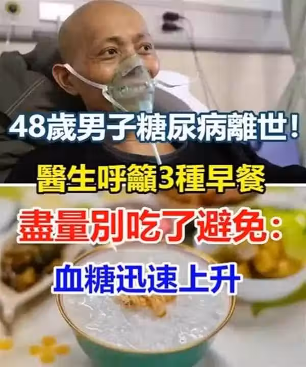 男子糖尿病離世!醫生呼籲「三種早餐」儘量別吃了 避免:血糖迅速上升