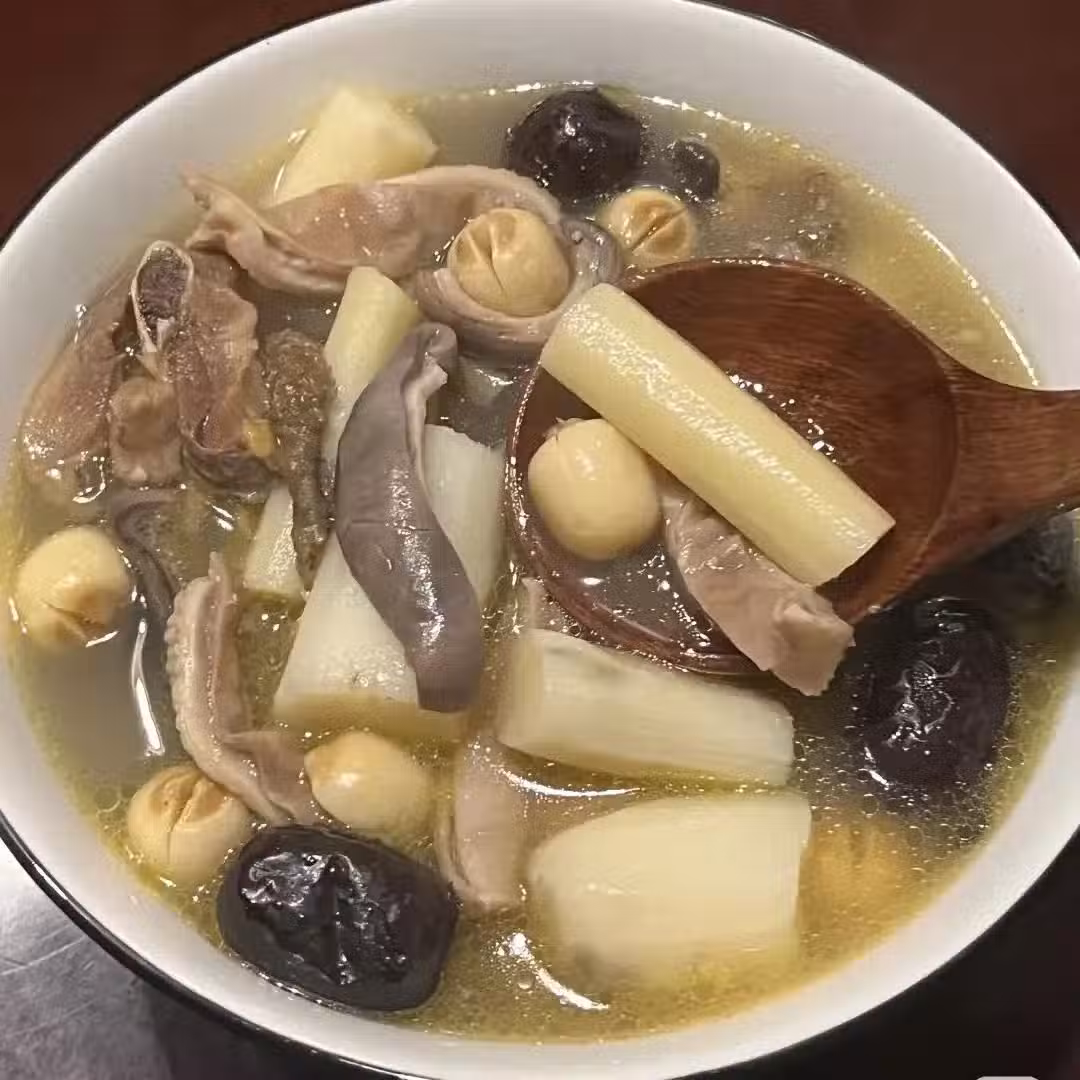 功效:四神湯中茯苓、芡實、蓮子、山藥都有健脾益胃的作用,味道清甜可口,適合絕大部分女生,只有身體內部循環好了,脾胃才會舒服。 猴頭菇燉排骨