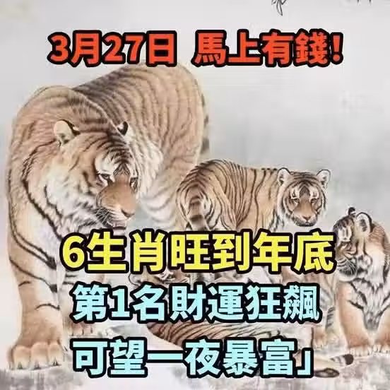 3月27日馬上有錢!6生肖旺到年底,第1名財運狂飆「可望一夜暴富」!