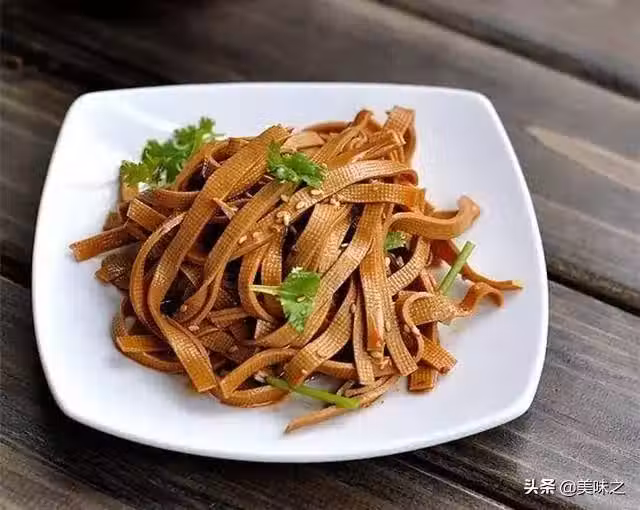 7、撈出滷好的豆腐絲,把豆腐絲切成喜好的長度。