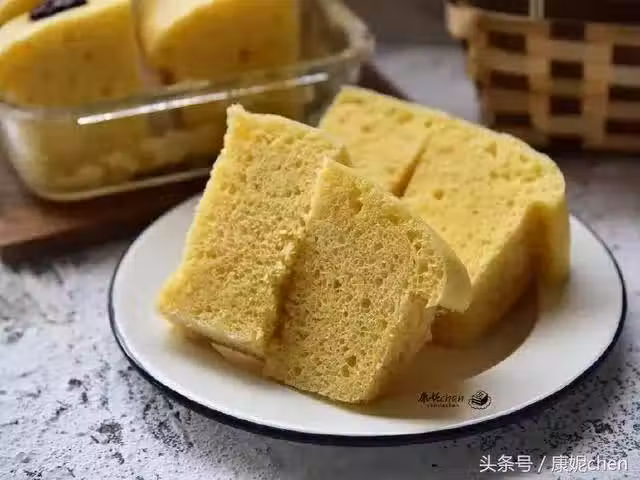 別看雞蛋發糕做法很簡單,蒸好以後給我爸爸吃,我爸爸說:「有點像蛋糕,蒸的就是好不怕上火,吃起來又很有彈性,跟蛋糕又有點不同,有點像馬拉糕。