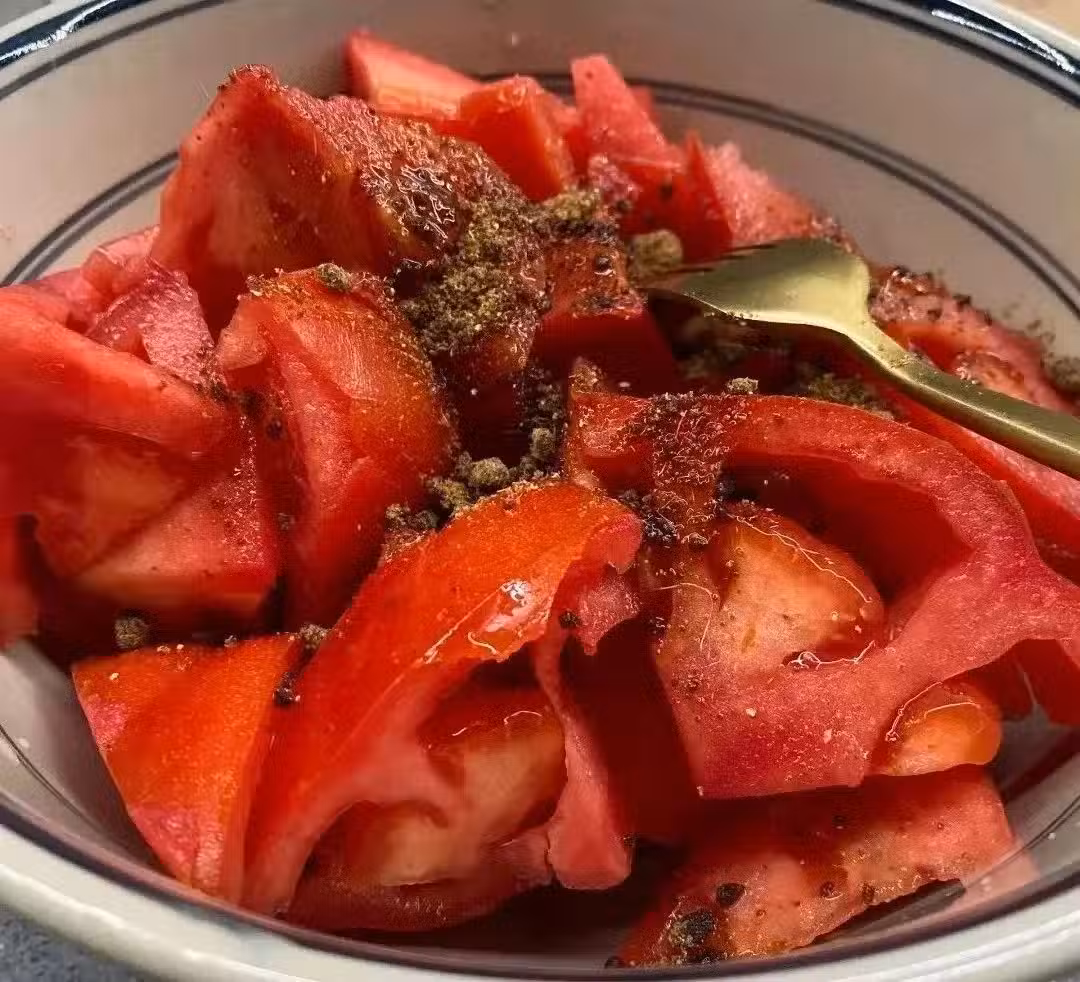 懶人吃法:番茄切片撒紅糖,冰箱腌2小時,酸甜汁能解暑美白。