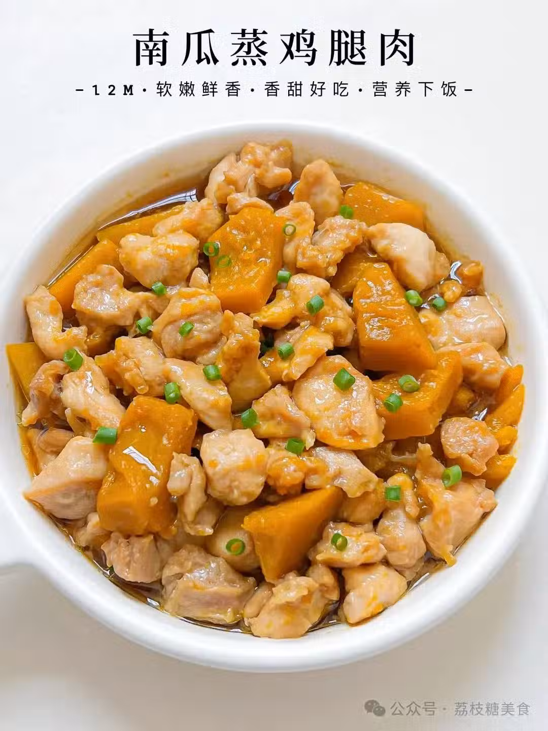 南瓜的果糖比蔗糖甜,與鮮嫩入味雞肉的一起,健脾養胃,低脂高蛋白。味道更鮮美。搭配米飯真的很下飯。 食材: 雞腿肉,南瓜,蔥姜
