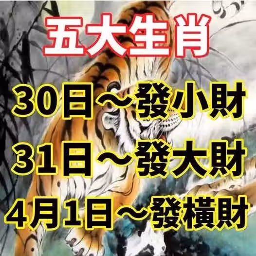 五大生肖:30日發小財,31日發大財,4月1日發橫財