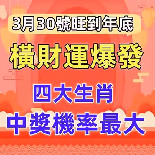 3月30號旺到年底,橫財運爆發,中獎機率最大的生肖