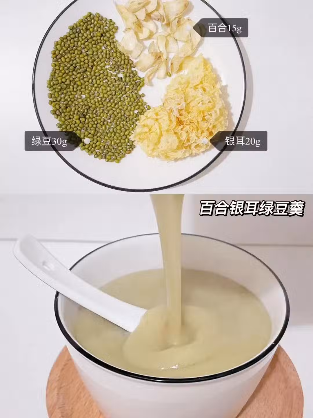 百合具有寧心安神的功效,對於失眠、多夢等症狀有一定的緩解作用,有助於改善睡眠質量。綠豆中的膳食纖維有助於促進腸道蠕動,改善消化功能,緩解便秘等問題。