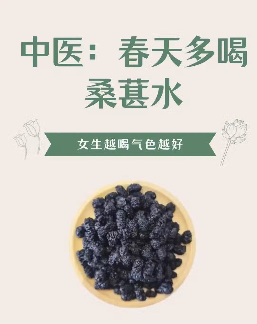 桑葚這小果子,超養肝腎,適合春天。《本草經疏》夸它涼皿補皿益陰。鮮桑葚易壞偏寒,但是桑葚干煮茶佳,滋陰補皿,還減寒涼。