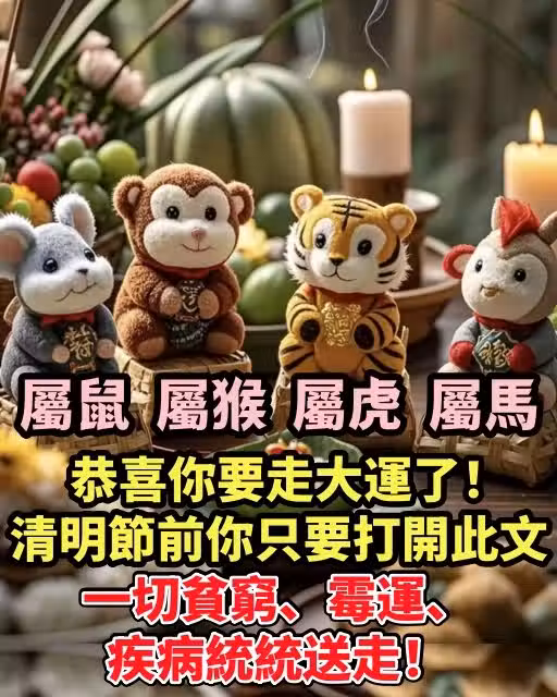 【屬鼠 屬猴 屬虎 屬馬】恭喜你要走大運了!清明節前你只要打開此文,一切貧窮、霉運、疾病統統送走