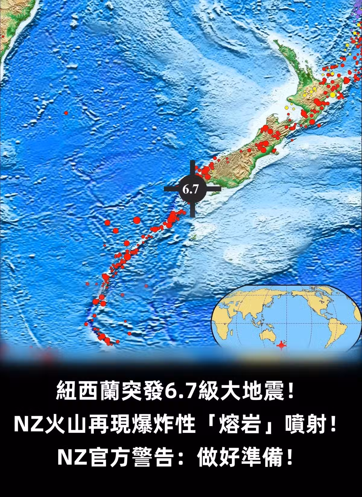 紐西蘭突發6.7級大地震!NZ火山再現爆炸性「熔岩」噴射!NZ官方警告:做好準備!