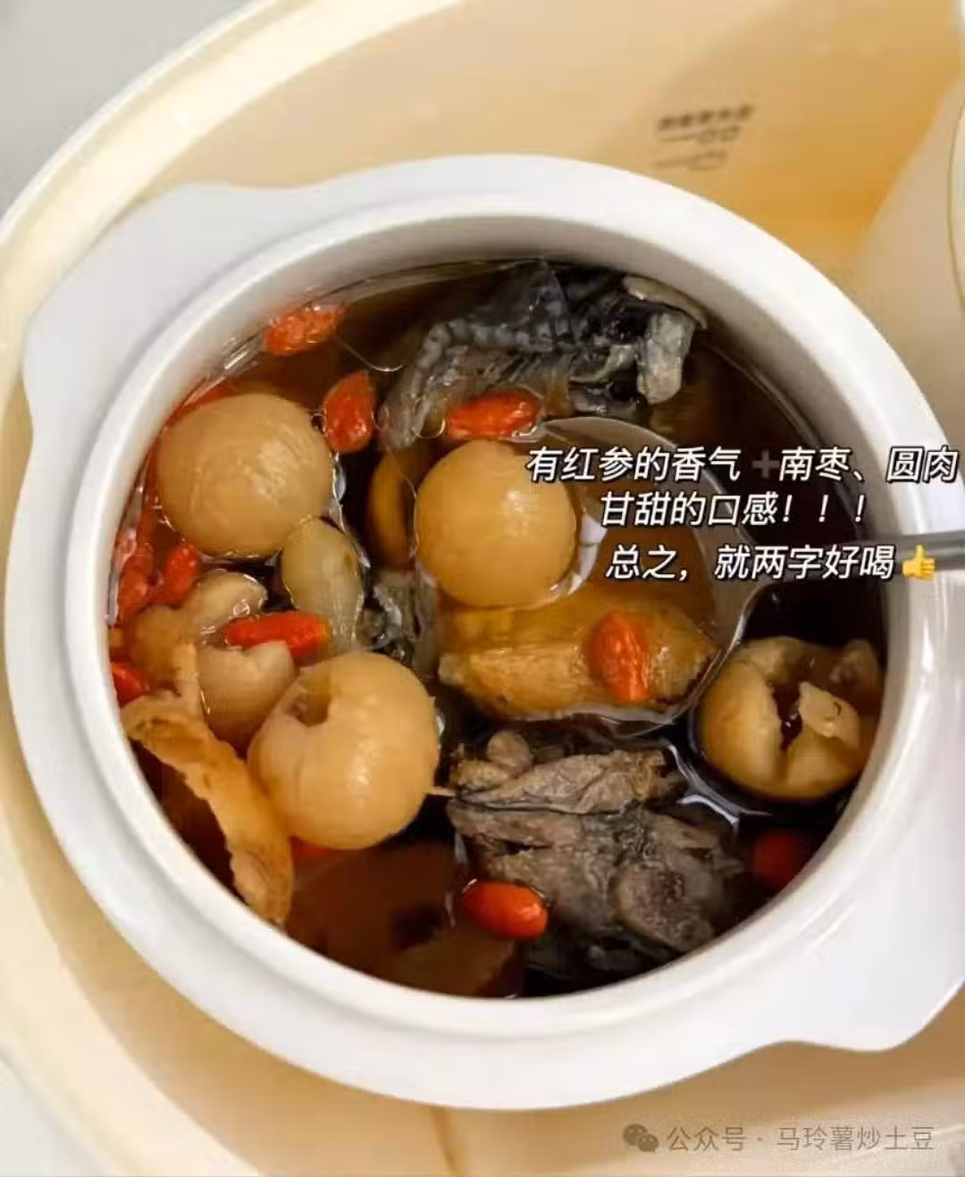 總結:整個湯有淡淡紅參味兒又有甜潤的口感,不加鹽也好喝,適量平時手腳涼、怕冷、氣血差的寶子!!