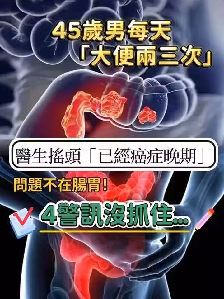 才45歲!他每天「大便兩三次」以為消化好,醫生搖頭「已經癌症晚期」,4個異常沒注意!