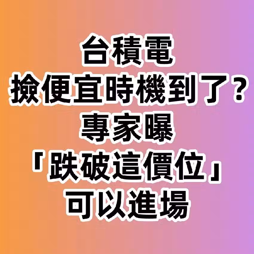 台積電撿便宜時機到了?專家曝「跌破這價位」可以進場..........