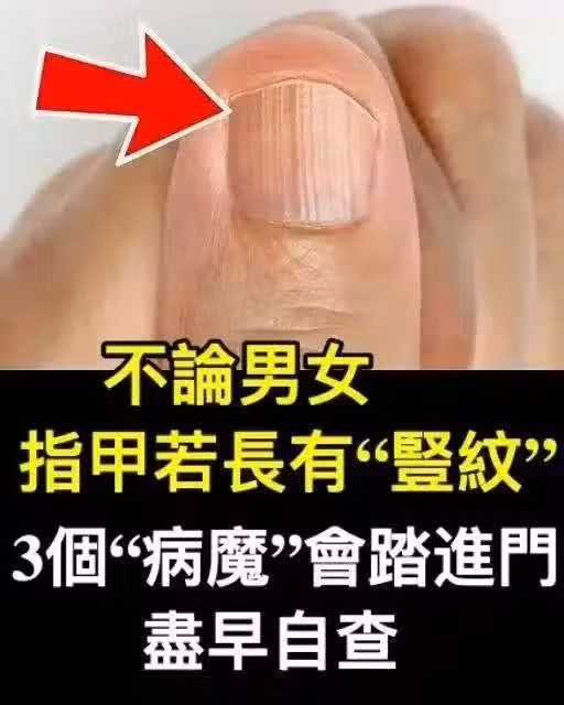 不論男女,指甲若長有「豎紋」,3個「病魔」會踏進門,請儘早自查!